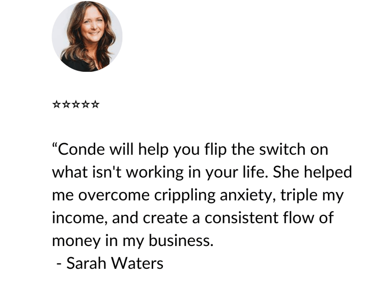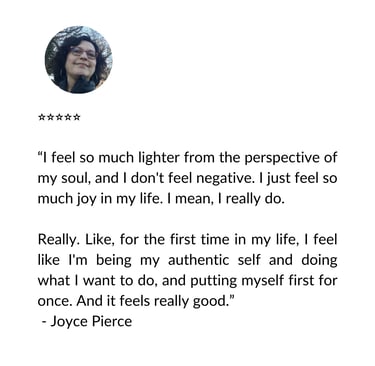 "When I met Conde, I felt spiritually stuck like my life was in neutral. I knew I needed to shift, but I didn’t know how. Her unique blend of tapping, affirmations, and deep emotional work helped me release years of limiting beliefs. I feel stronger, more confident, and deeply empowered. Now, when challenges show up, I have tools that create real results. Conde didn’t just help me heal she showed me how to step into the life I was always meant for. I’ll be forever grateful."